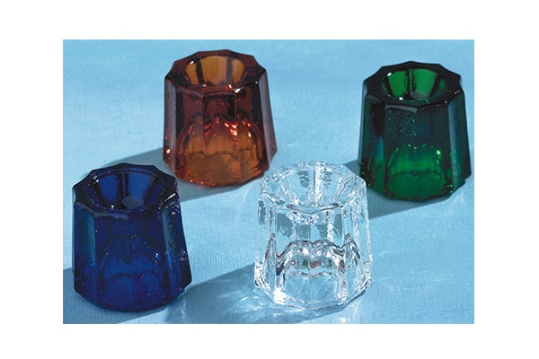 Henry Schein brand Dappen Dishes made from glass. Available in a variety of colors including clear, blue, amber, and green for the use of prophy angles and accessories in preventive dentistry.