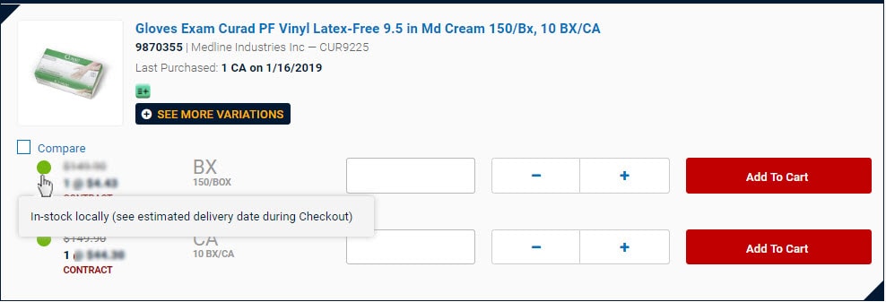 Each Item Status indicator is color coded to represent estimated item availability. The following represents the possible Item Statuses: