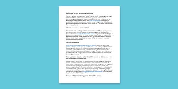 In this eBook, we cover all areas of outsourcing, from insurance verification to dental billing to payment posting, and help alleviate some concerns you may have with the process.