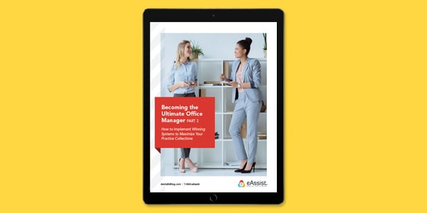 A dental office manager gets pulled in a dizzying number of directions every day — delivering patient care, presenting treatment plans, scheduling to goal, coaching staff, responding to the doctor's needs, etc., etc., etc. — all while simultaneously trying to handle the many billing processes that keep the practice on a path of financial profitability.
