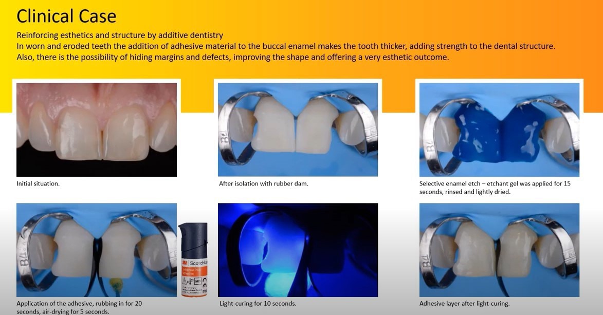The addition of adhesive materials to the buccal enamel can make the tooth thicker, adding strength to the dental structure. There is also the possibility of hiding margins and defects, improving the shape and offering a very aesthetic outcome.