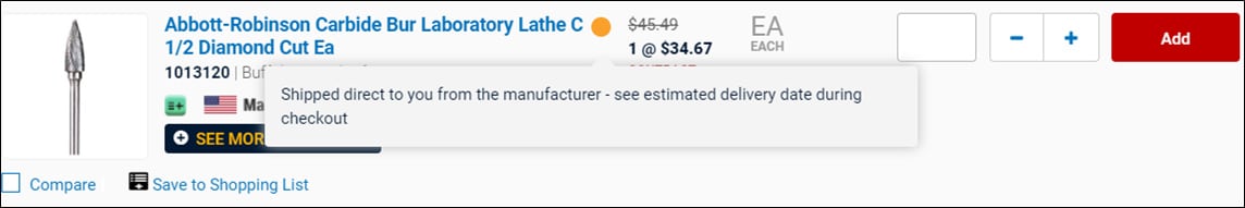 Each Item Status indicator is color coded to represent estimated item availability. The following represents the possible Item Statuses: