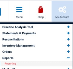 There are approximately 25 Reports available within the Reporting Portal on the Henry Schein Website. The Reporting Portal can be found under My Account > Orders > Reporting.