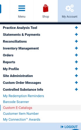 E-Catalog Administrators can manage items within their E-Catalogs by going to My Account > Custom E-Catalogs.