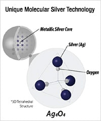 Respuesta: La plata iónica tiene una carga positiva que acepta un solo electrón. Una vez que el ion de plata ha adquirido este electrón, queda enlazado y ya no puede atraer electrones adicionales. La plata molecular de SilvrSTAT® tiene una carga neutra y no se enlaza, por lo que adquiere y elimina electrones en tanto permanece en la herida, lo que la hace más poderosa.