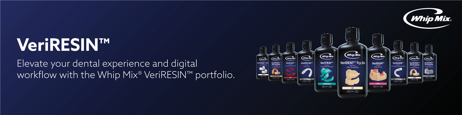 VeriMODEL™ All-Purpose is an exceptional 3D printing resin designed by Whip Mix for dental professionals. It ensures extreme precision, making it ideal for creating accurate working and presentation models. Whether you're crafting crowns, bridges, or orthodontic models, count on its high-resolution output. Beyond models, this resin caters to a wide variety of 3D printed applications. It's perfect for crown and bridge work, prosthetics, and orthodontics. VeriMODEL™ All-Purpose provides finely detailed surfaces, allowing you to visualize true margins and anatomical features with clarity.