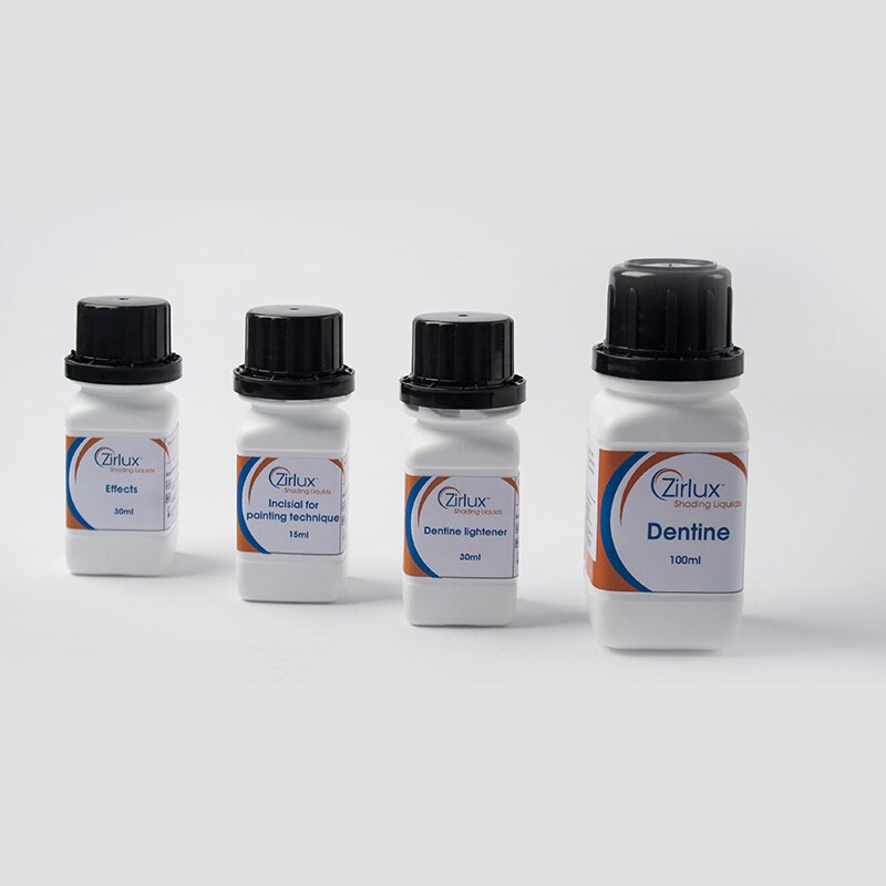 Tome el control total del tono mediante el disco blanco Zirlux® 16+. Los 16 tonos Vita®* pueden lograrse mediante el emparejamiento con los líquidos de teñido Zirlux® antes de la sinterización. Los técnicos ahora pueden gestionar todo el proceso de pigmentación de principio a fin.